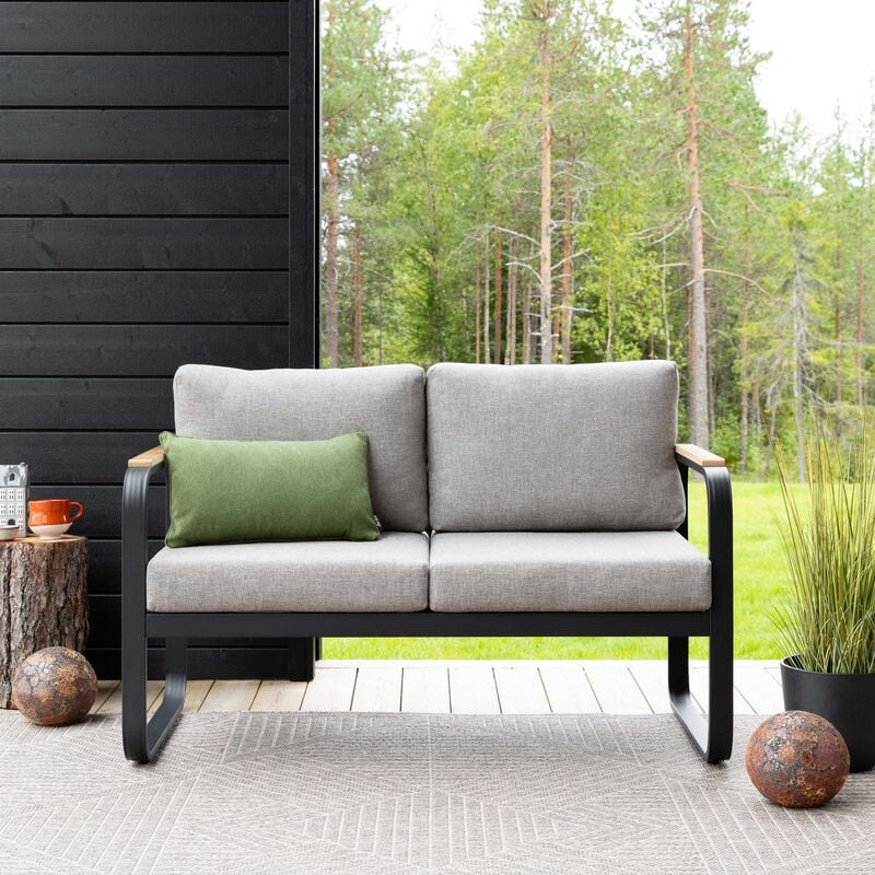 Moderni Lumme 2-istuttava sohva terassilleLumme sohva tuo terassillesi modernia tyylikkyyttä ja rentoa mukavuutta. Ruostumattomasta ja huoltovapaasta alumiinista valmistettu runko kestää vaihtelevat sääolosuhteet, ja aintwood-puukomposiittipinnat käsinojissa lisäävät eleganttia ilmettä.