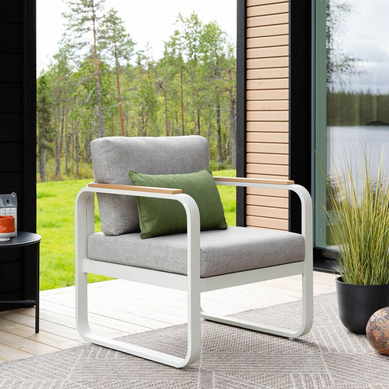 Lumme nojatuoli - tyylikäs valinta terassilleLumme nojatuoli tuo terassillesi modernia tyylikkyyttä ja rentoa mukavuutta. Ruostumattomasta ja huoltovapaasta alumiinista valmistettu runko kestää vaihtelevat sääolosuhteet, ja aintwood-puukomposiittipinnat käsinojissa lisäävät eleganttia ilmettä.