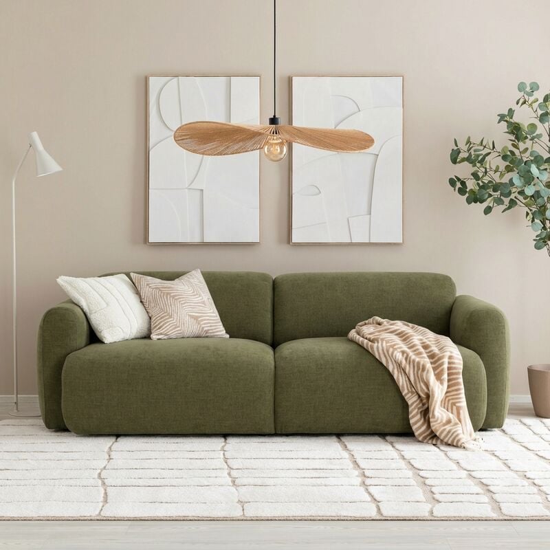 Tämä kutsuvan pehmeä ja muhkea sohva tuo olohuoneeseesi täydellisen yhdistelmän mukavuutta ja tyyliä. Sen laadukkaat, pehmeät tyynyt tekevät siitä kodikkaan keskipisteen, jossa on ihana rentoutua. Valittavana on useita eri verhoiluvaihtoehtoja.