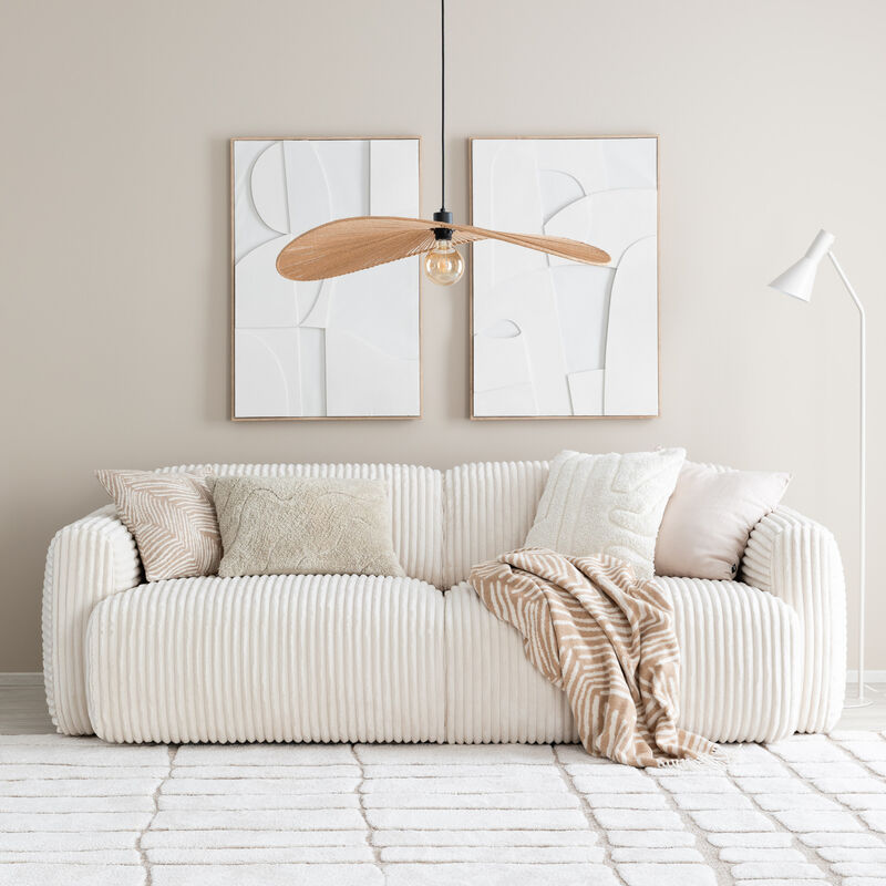 Tämä kutsuvan pehmeä ja muhkea sohva tuo olohuoneeseesi täydellisen yhdistelmän mukavuutta ja tyyliä. Sen laadukkaat, pehmeät tyynyt tekevät siitä kodikkaan keskipisteen, jossa on ihana rentoutua. Valittavana on useita eri verhoiluvaihtoehtoja.