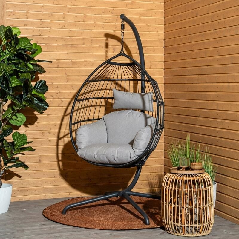 Ilmava Lumo riipputuoli ja telineLumo riipputuoli kutsuu ottamaan rennosti. Sen siro ja ilmava muotoilu tuo ulkotiloihin ripauksen keveyttä ja modernia tyyliä. Tukeva maalattu metallirunko ja säänkestävä polyrottinki takaavat, että tuoli kestää hyvin säätä sekä aikaa.