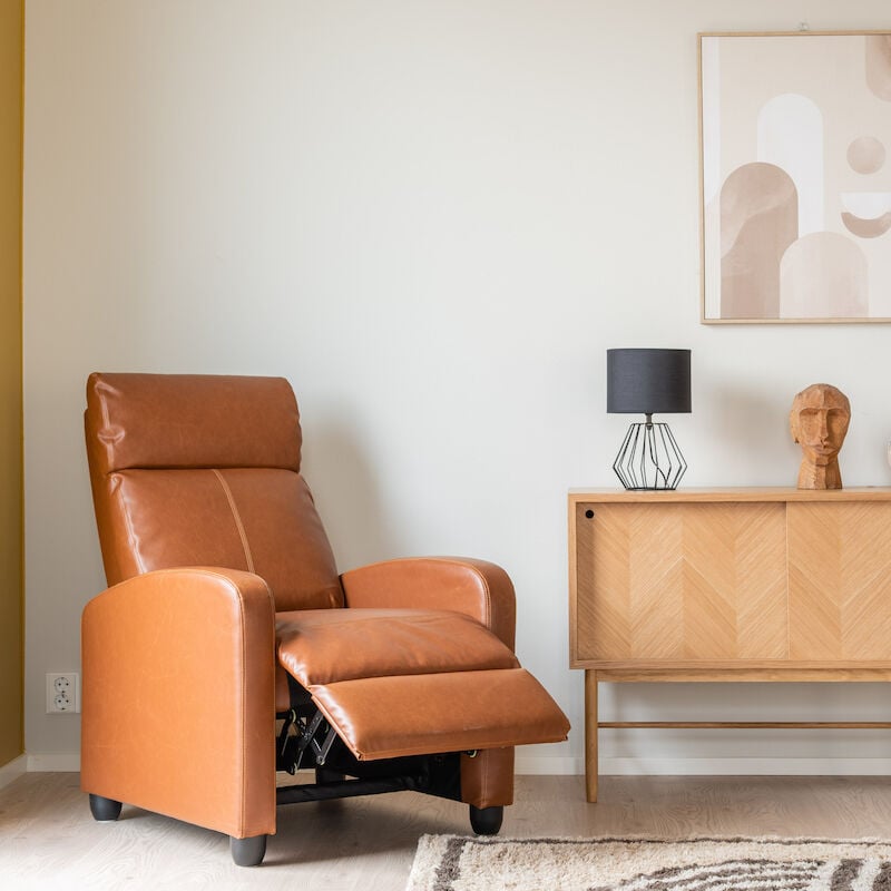 Tyylikäs Lund mekanismituoli keinonahkaverhoilullaLund mekanismituolissa on mukava rentoutua. Tuolissa on integroitu jalkarahi, joka nousee ylös selkänojaa kallistettaessa. Selkänoja kallistuu työntämällä sitä taaksepäin. Istuinosassa on hyvin joustava pussijousitus, joka viimeistelee istuinmukavuuden. Tuoli on verhoiltu PU-keinonahalla, joka näyttää ja tuntuu aidolta nahalta. PU-keinonahka on kestävää, joustavaa ja helppo pitää puhtaana. Materiaali on hengittävää, joten se ei hiosta paljasta ihoa vasten.