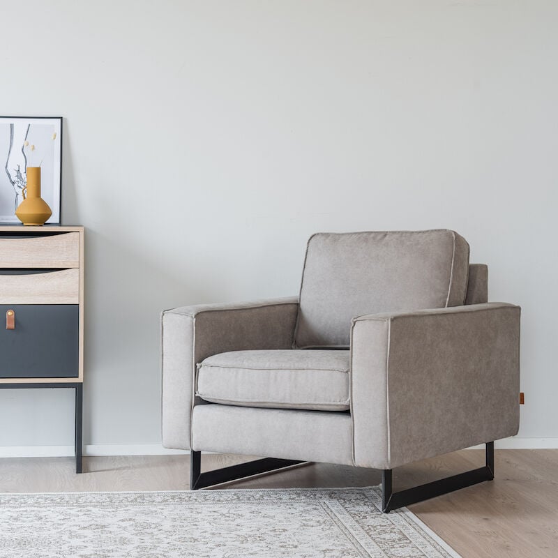 Macho nojatuoli kangasverhoiltuLaadukkaan Macho nojatuolin linjakkuus ja kauniit yksityiskohtaiset tereet antavat upean ulkonäön. Macho nojatuoli on verhoiltu kulutusta kestävällä huonekalukankaalla. Nojatuolissa on tukevat teräksestä valmistetut 15 cm korkeat jalat. Korkeiden jalkojen ansiosta tuolin alta on helppo imuroida. Istuintyyny on valmistettu kestävästä HR30 kylmävaahtomuovista. Selkätyyny on valmistettu 50% polyesteri pallokuidusta ja 50% kierrätetystä vaahtomuovirouheesta. Istuin- ja selkätyynyjen päälliset on irrotettavissa. Nojatuoli toimitetaan jalat irrallaan, pahviin ja muoviin pakattuna.