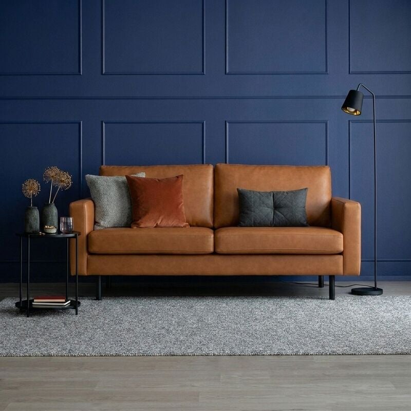 Marc 3-istuttava sohva nahkaverhoiltu konjakinruskea