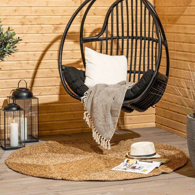 Kauniilla pyöreällä meriruoko matolla luot lämmintä ja kodinomaista tunnelmaa terassille ja sisätiloihin.