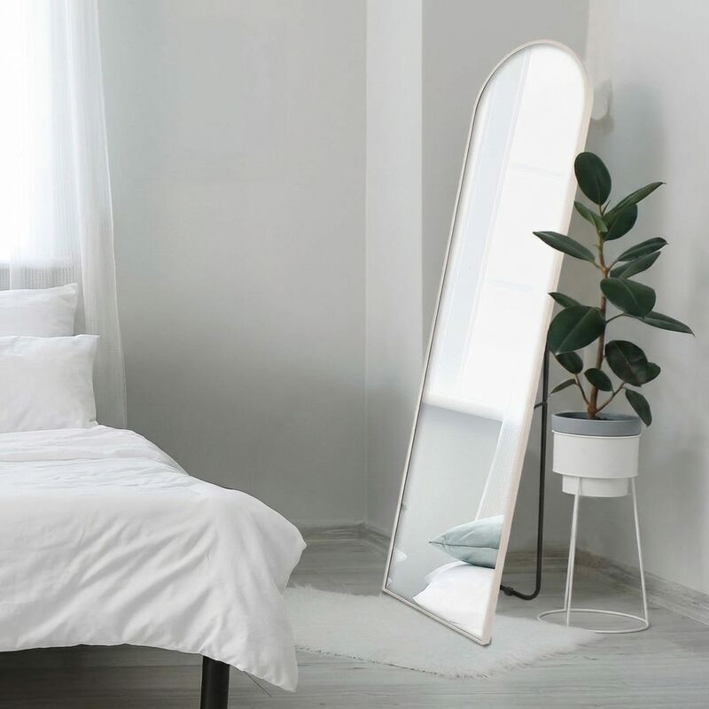 40×160 cm lattia- ja seinäpeili. Ohut metallikehys ja kaareva yläreuna tuovat keveyttä. Jalusta tekee siitä lattiapeilin, ja peili voidaan kiinnittää myös seinälle pystyasentoon.