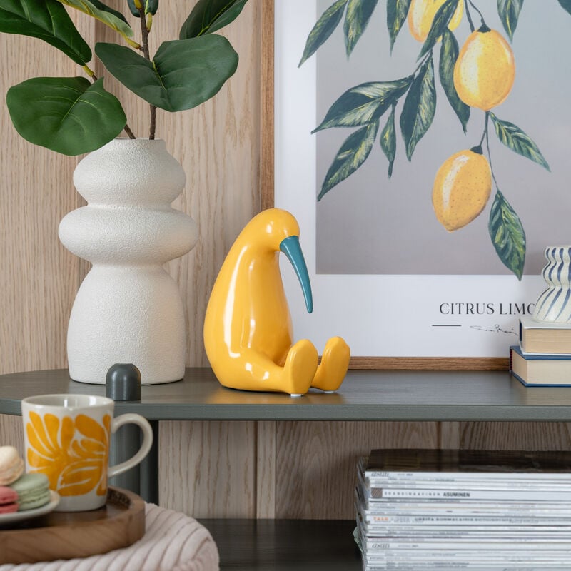 Kiwi-koriste tuo leikkisää väriä kotiin. Keraaminen, keltasininen hahmo sopii niin hyllylle, työpöydälle kuin lasteenhuoneeseen. Koko 9,5 x 16 x 18,5 cm.