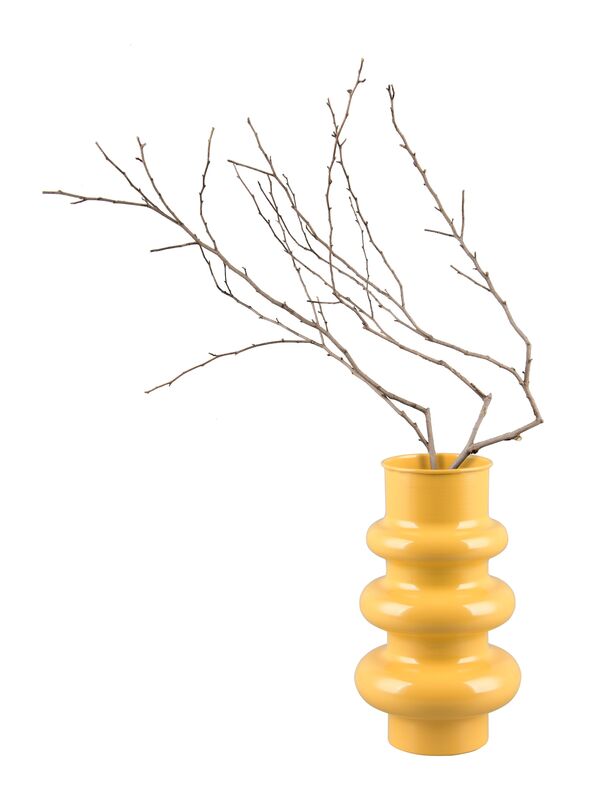 Pirteän värinen M&M Ringo vaasiRingo on pirteän värinen metallimaljakko, joka kerroksellisella muodollaan luo sisustukseen rytmiä ja pientä leikkisyyttä. Keltainen sävy toimii katseenvangitsijana niin ikkunalaudalla, kirjahyllyssä kuin ruokapöydän keskipisteenä.