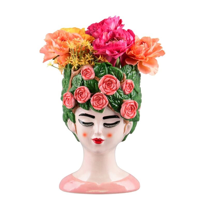 Näyttävä M&M Rodea keraaminen vaasi, joka toimii yhtä hyvin katseenvangitsijana kuin kukkien maljakkona. Veistoksellinen muoto ja runsaat yksityiskohdat tuovat sisustukseen persoonallisuutta ja väriä. Vaasi, joka saa hymyn huulille.