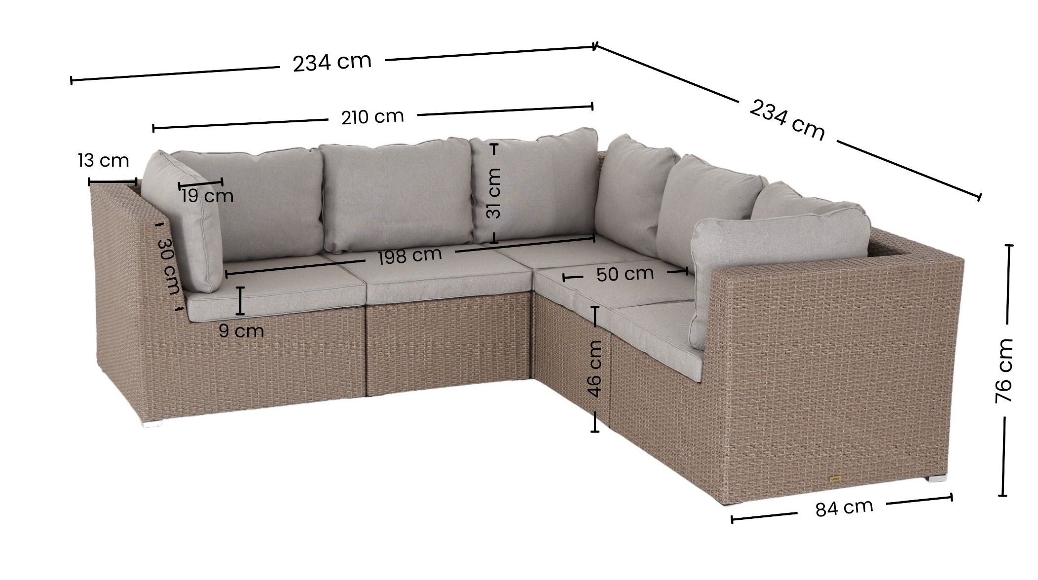 Sohva on valmistettu kestävästä, kauniin sävyisestä polyrottingista ja säänkestävästä alumiinista, mikä tekee siitä kevyen ja helpon siirrellä. Alumiinirunko ei ruostu sateessa, joten sohva kestää hyvin vaihtuvissa sääolosuhteissa.