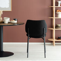 Mukavat Enzo-tuolit täydentävät kokonaisuuden. Ne on verhoiltu kauniilla, eläväpintaisella buklee-kankaalla, joka tuo sisustukseen kodikasta tekstuuria. Tukevat metallijalat ja vanerista valmistettu istuin sekä selkäosa tekevät tuolista kestävän ja pitkäikäisen valinnan. Valmistusmaa Kiina.