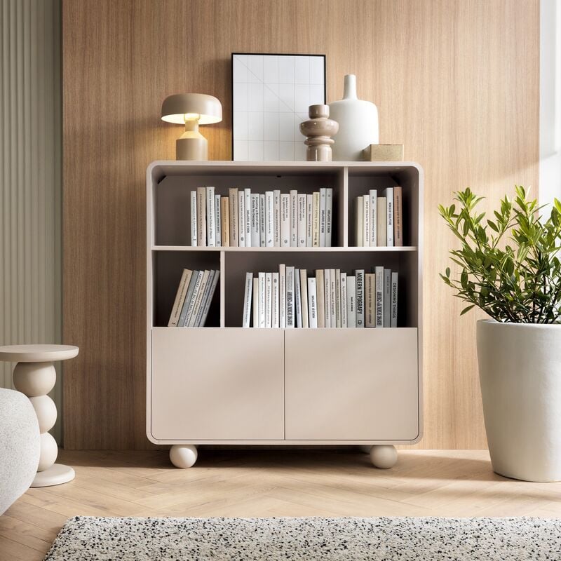 Ebba-kaappi on ajattoman tyylikäs säilytyskaluste, jossa pehmeät muodot ja kashmirin sävy kohtaavat käytännöllisen säilytystilan. Push-to-open -mekanismi ja pyöreät puujalat viimeistelevät viimeistellyn kokonaisuuden.