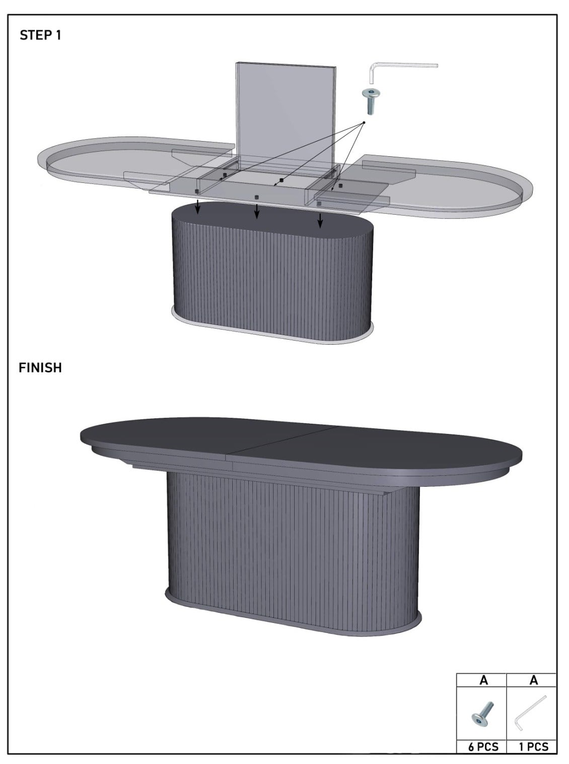 210x100 cm kokoinen pöytä tarjoaa reilusti tilaa perheelle, ja kun vieraita saapuu lisää, pöytä jatkuu näppärästi 270 cm mittaan. Kätevä jatkopala säilyy pöydän sisällä, joten se on aina helposti saatavilla.