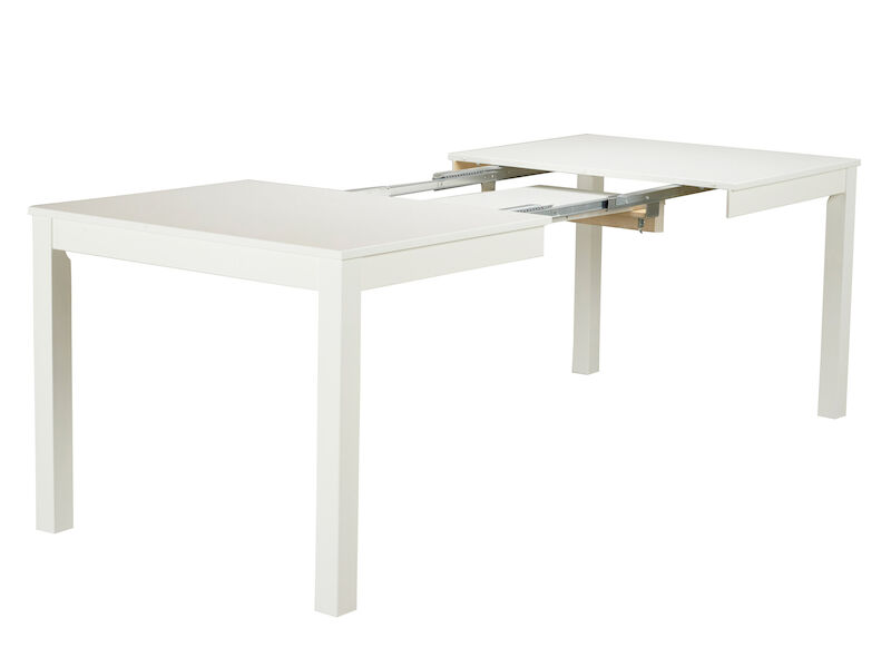 Tukeva koivusta valmistettu jatkettava ruokapöytä, johon mahtuu hyvin 4-6 tuolia. Pöydän pituus ilman jatkopalaa on 140 cm ja jatkopalan kanssa 180 cm. Pöydän kansi on valmistettu tukevasta koivusta, jalat mdf:ää, sarjapuu koivuvaneria. Poikkeuksena kokonaan valkoinen tuote, jonka jalat ja kansi on mdf:ää ja sarjapuu koivuvaneria. Harmaa väri petsattua koivua. Pintakäsitelty petsilakalla tai valkoisella maalilla riippuen väristä. Tästä pieneen tilaan käytännöllinen ja kunnollinen ruokapöytä neljälle-kuudelle. Jatkopalalle on säilytyspaikka pöydän kannen alla. Toimitetaan jalat irrallaan.