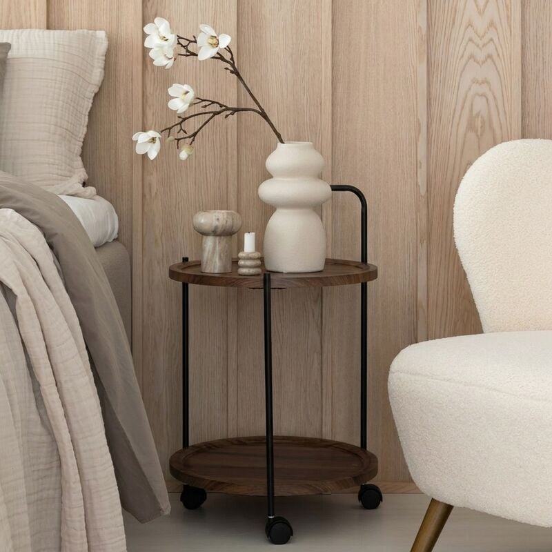 Move sivupöytä tuo arkeen kevyttä käytännöllisyyttä. Pyörien ansiosta siirrät pöytää helposti tilasta toiseen. Kaksitasoinen rakenne tarjoaa tilaa niin tarjottaville kuin sisustusesineille.