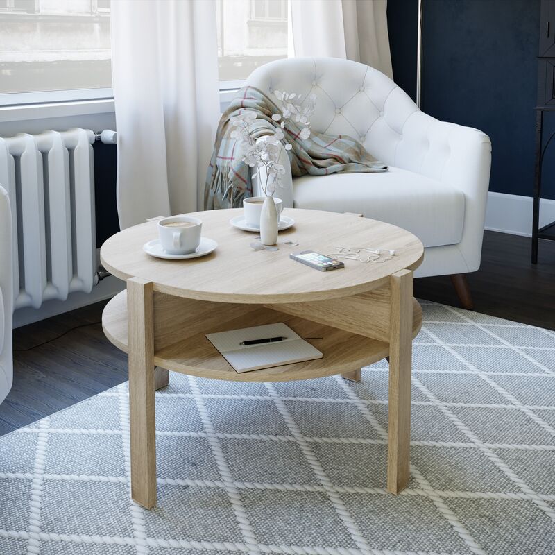 Nekala pyöreä sohvapöytä säilytystilalla Ø75 cm tammi