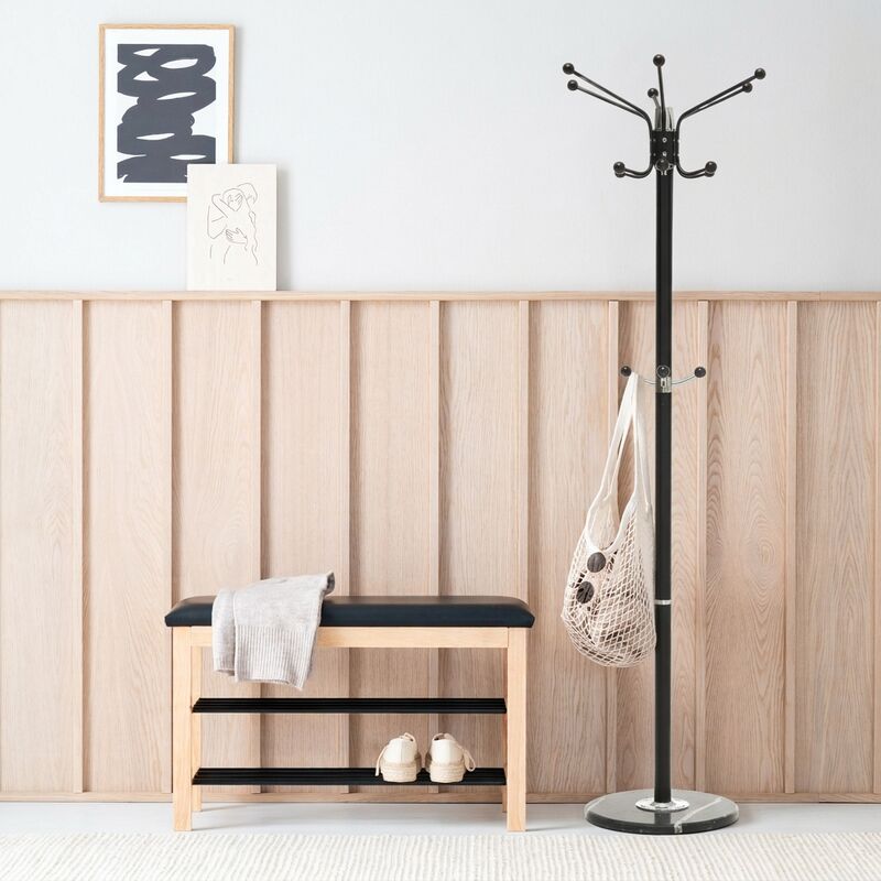 Tukeva metallirunko ja painava kivijalusta pitävät naulakon napakasti paikallaan, vaikka koukut täyttyisivät takeista ja laukuista. Useat ripustuskoukut tarjoavat reilusti tilaa arjen tärkeimmille: ulkovaatteille, asusteille ja vaikka kassille, jonka nappaat mukaan lähtiessäsi.