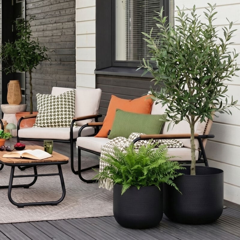 Noma kukkaruukkusetti tuo tyyliä viherkasvien ja kukkien esillepanoon. Kaksi erikokoista metalliruukkua sopivat niin sisälle kuin katettuun ulkotilaan ja luovat kauniin, yhtenäisen kokonaisuuden. Pienempi ruukku Ø31,5 cm ja korkeus 28,5 cm. Isompi ruukku Ø41 cm ja korkeus 33 cm.