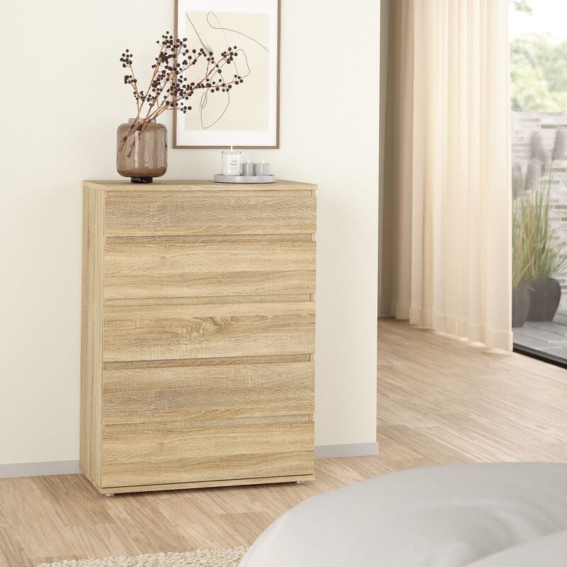 Selkeälinjainen Nova lipasto 5 laatikollaNova lipasto sopii sinulle, joka haluat kotiin selkeän ilmeen ja käytännöllistä säilytystilaa. Vetimetön, minimalistinen muotoilu näyttää siistiltä ja rauhalliselta. Lipasto asettuu luontevasti makkarin säilytyskalusteeksi, eteiseen pientavaroille tai olkkariin täydentämään muuta sisustusta.