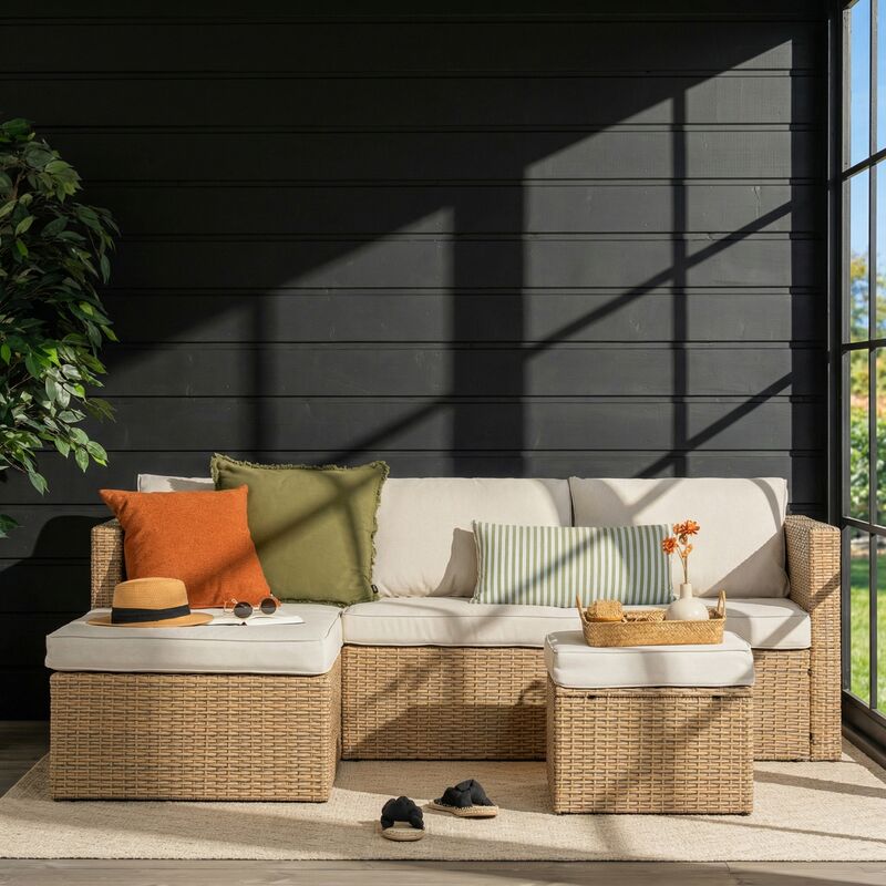 Rentoon oleiluun divanisohva ja rahi/sohvapöytäOakland divaanisohva tuo mukavan oleskelupaikan lasitetulle parvekkeelle tai katetulle terassille. Polyrottinkipunos, selkeä muotoilu ja muhkeat pehmusteet tekevät kokonaisuudesta raikkaan ja ajattoman.