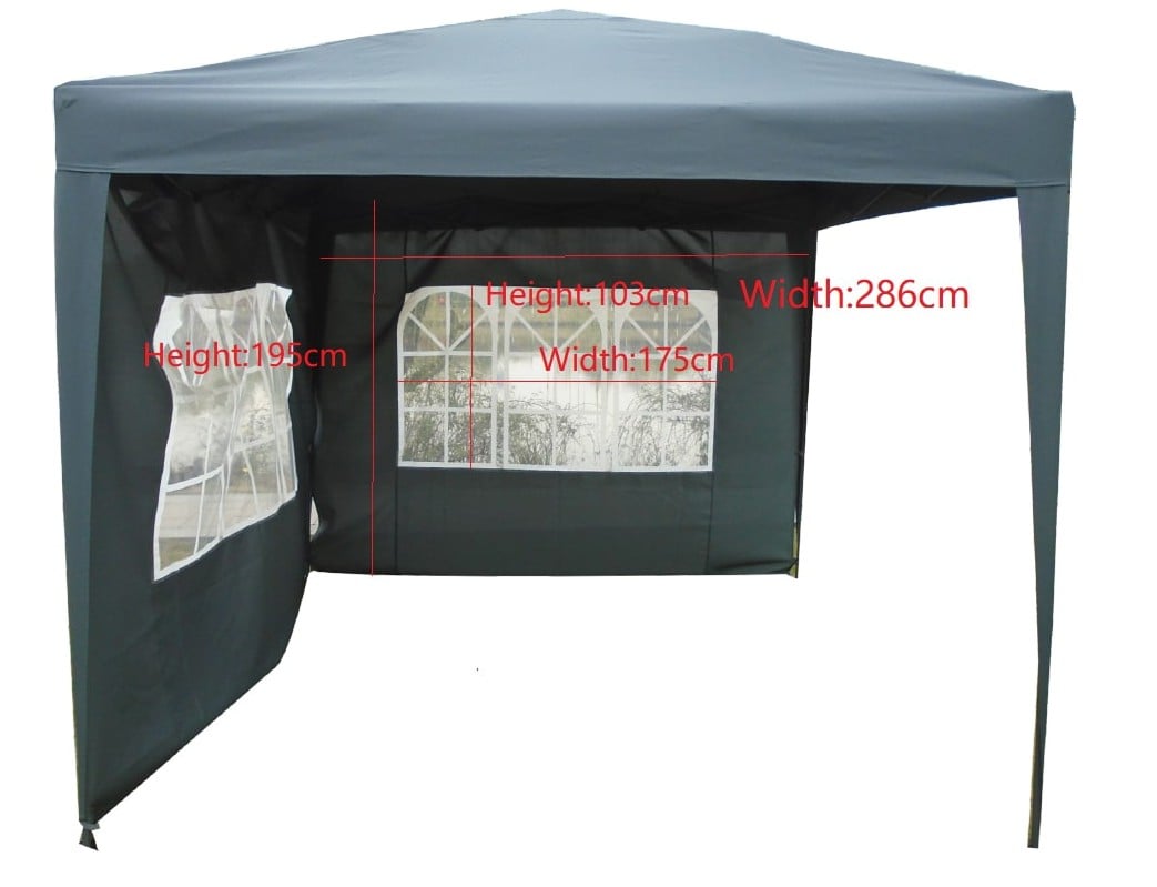 Seinät on helppo kiinnittää paviljongin runkoon ja tummanharmaa polyesterikangas on sekä säänkestävä että helppo pitää puhtaana. Täydellinen lisä varmistamaan, että ulkona viihtyy säästä riippumatta!