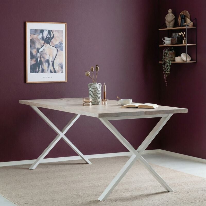 Pöydän X-metallijalat ovat sekä tyylikkäät että kestävät, ja ne tuovat ruokapöytään modernia ilmettä. Ne ovat erittäin vakaat ja tukevat, joten pöytä pysyy tukevasti paikoillaan kovassakin käytössä. Jalat on viimeistelty jauhemaalaamalla.
