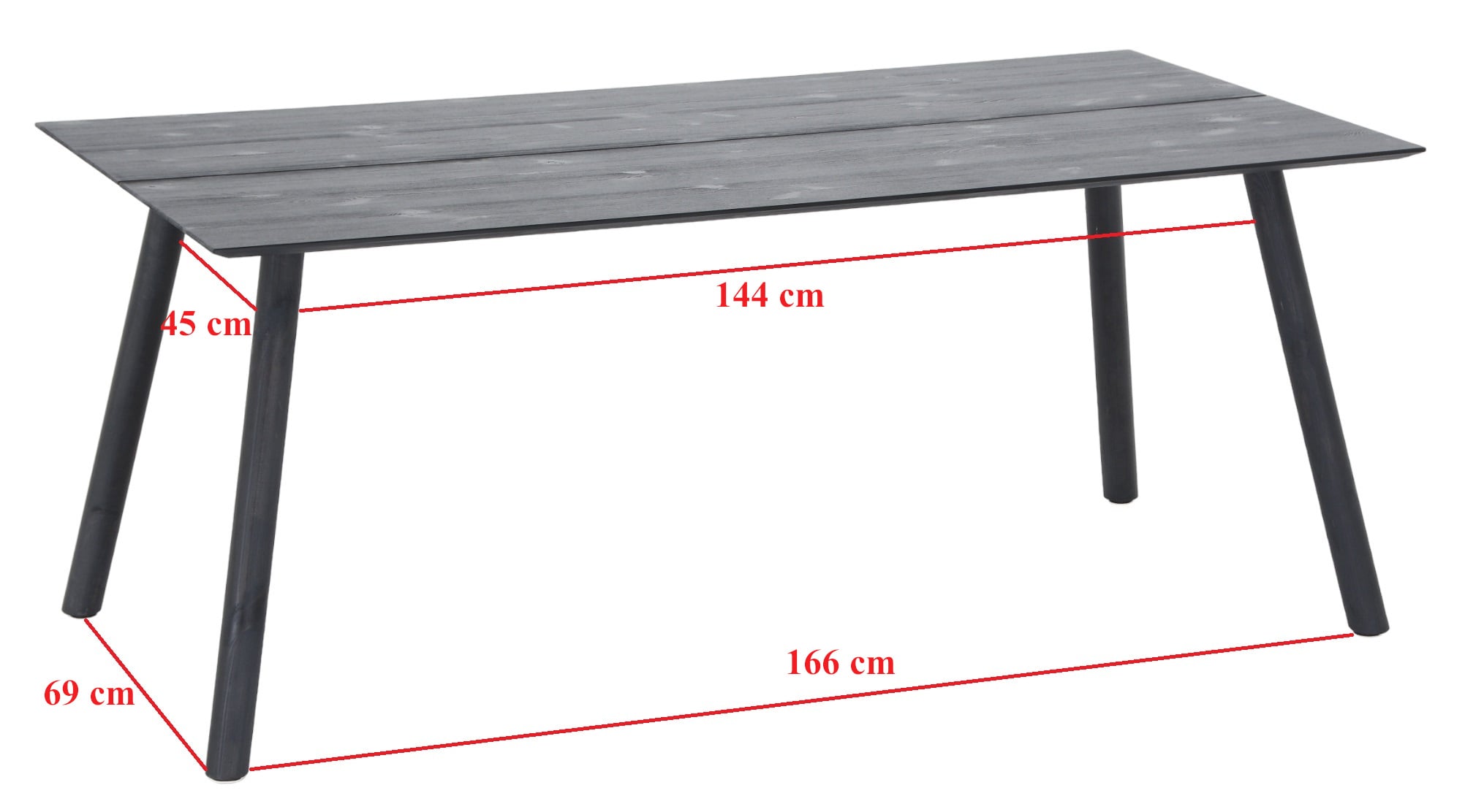 Männystä valmistettu viistojalkainen ruokapöytä. Sopii sisäkäyttöön, sekä katettuun ulkotilaan.