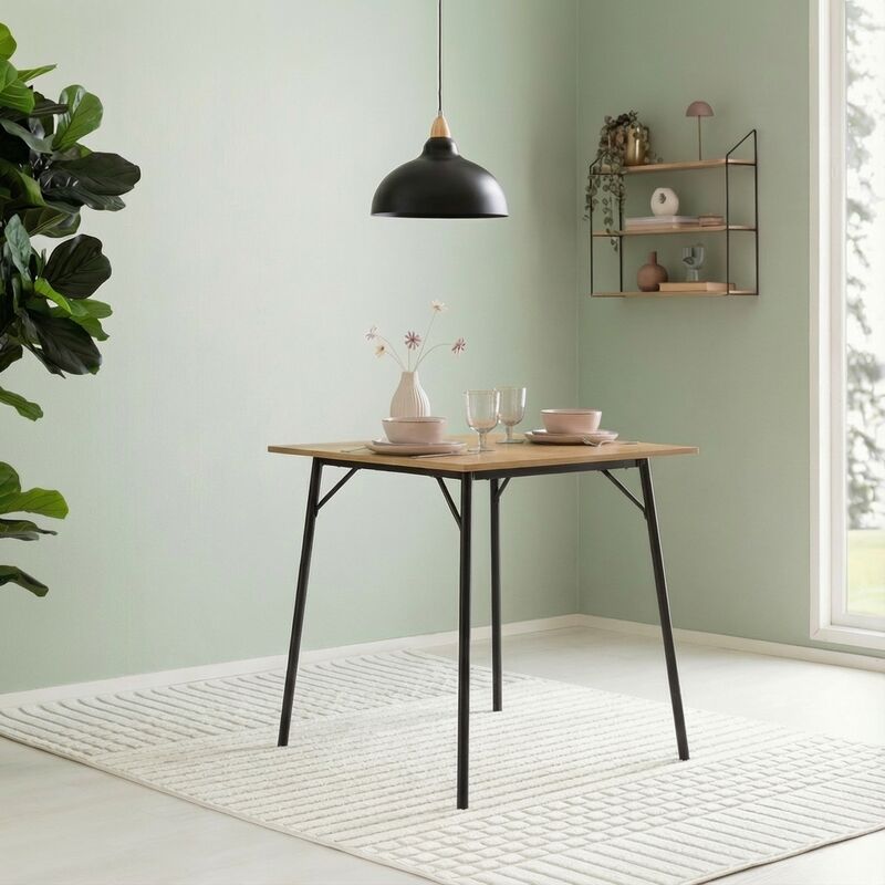 Sirokokoinen Peru ruokapöytä 70x70 cmSirokokoisessa Peru ruokapöydässä tammenvärinen melamiinipintainen pöydänkansi on kiinnitetty ohuille mustille metallijaloille. Yhdistelmä luo modernin ruokapöydän, jossa on ripaus maalaismaista vaikutelmaa. Pöydänkansi korostaa kauniisti puumaisen kuviointinsa, joka tuo esiin puunsyyt ja kuvioinnin selkeästi. Melamiinipintainen kansi on kuitenkin huoltovapaa ja helppo pitää puhtaana.