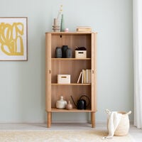 Kaappi on täydellinen yhdistelmä modernia tyyliä ja käytännöllisyyttä. Tyylikkäät rulo-ovet tuovat kaapin sisällön helposti saataville. Valmistettu korkealaatuisesta, FSC-sertifioidusta tammiviilusta ja viimeistelty lakkapinnalla.