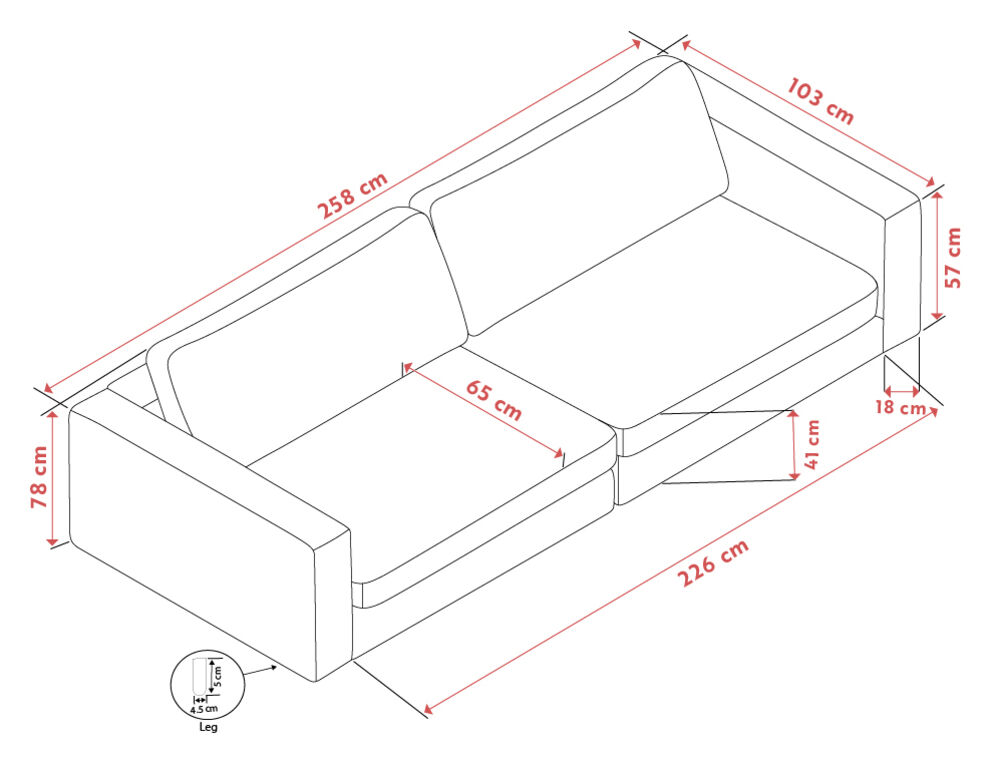Sohvan runko on valmistettu kestävästä vanerista ja kalustelevystä, ja siksak-jousitus varmistaa pitkäikäisen istuinmukavuuden. Selkätyynyjen pehmeä täyte vaahtomuovirouheesta ja polyesterikuitupalloista tekee niistä helposti muotoiltavia ja miellyttävän pehmeitä.