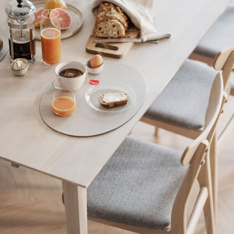 Huomioithan, että öljyllä käsitellyt pinnat on käsiteltävä huonekaluöljyllä, joka on tarkoitettu sisähuonekaluille ennen käyttöä ja sitten säännöllisesti 2-3 kertaa vuodessa tai tarpeen mukaan. Tämä koskee erityisesti pöytälevyä, tahrojen ja naarmujen välttämiseksi.