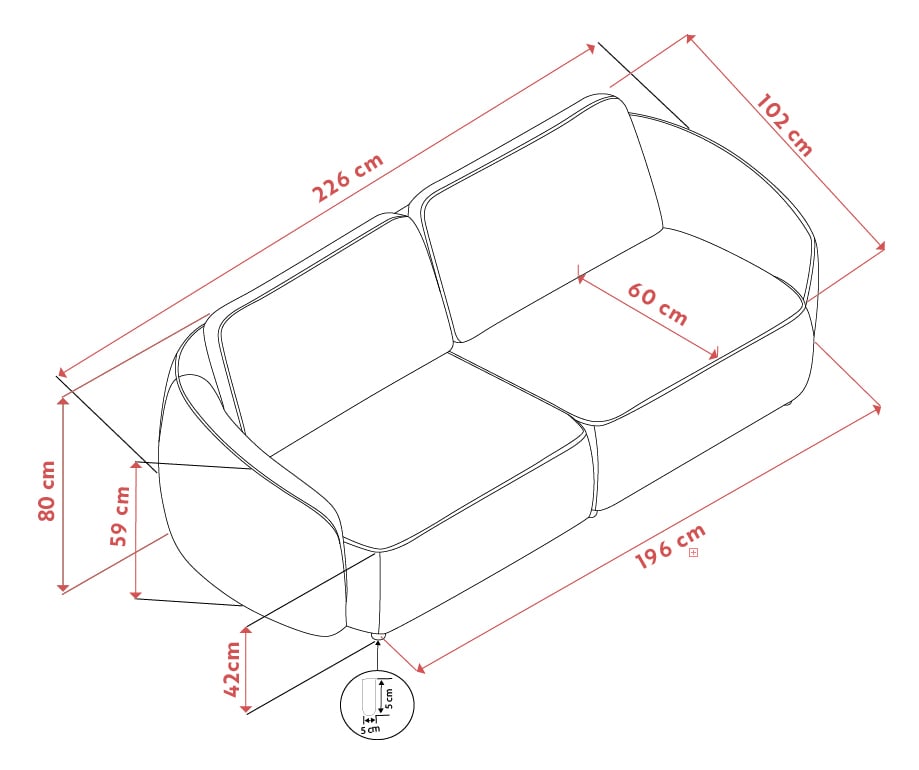 Laadukas chenillemäinen Anna-kangas viimeistelee tyylikkään ulkonäön ja kestää hyvin arjen kulutusta. Kankaan erinomainen martindale-luku takaa, että sohva säilyy kauniina ja kestävänä pitkään. Vastuullisuus on otettu huomioon materiaaleissa: sohvan rungossa käytetty puumateriaali on FSC®-sertifioitua, mikä tarkoittaa, että puumateriaali tulee vastuullisesti hoidetusta metsästä.