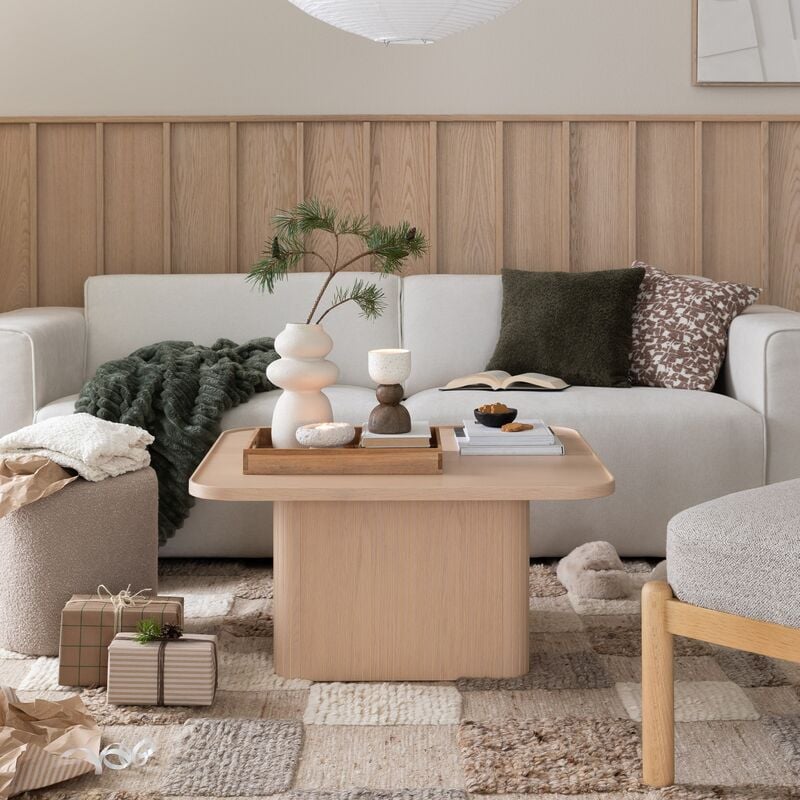 Tyylikäs Rowico Home Sullivan sohvapöytäTyylikäs funkkishenkinen ja moderni Rowico Home Sullivan sohvapöytä. Neliönmuotoisen pöydän jalassa on trendikkäät linjat ja kannen pyöristetyt kulmat tuovat pehmeyttä. Sohvapöytä on valmistettu tammiviilusta ja massiivitammesta. Kansi on tammiviilua ja kannen reuna sekä jalka ovat massiivitammea.