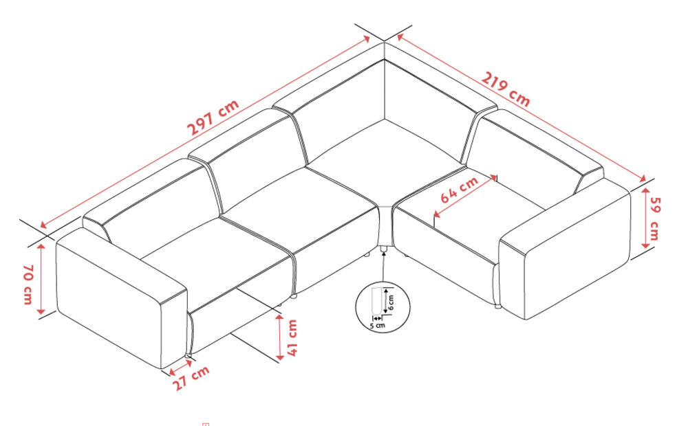 Sohva toimitetaan valmiiksi kasattuina moduuleina, jalat irrallaan. Moduulit kiinnitetään toisiinsa rungossa olevien kiinnikkeiden avulla.