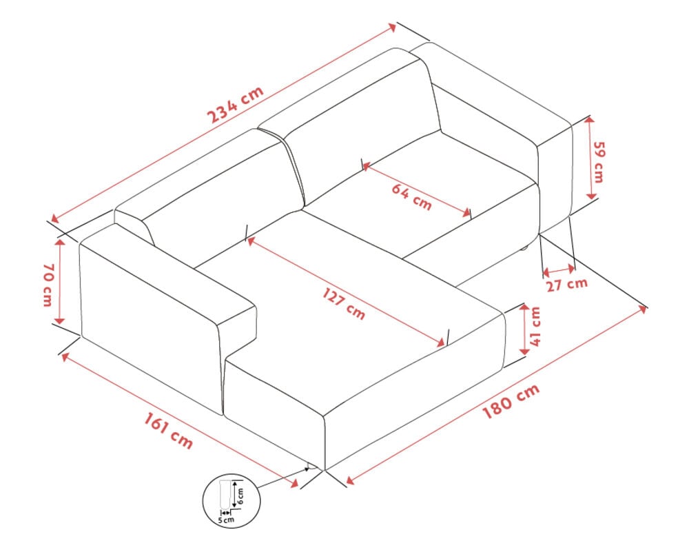 Sohva toimitetaan valmiiksi kasattuina moduuleina, jalat irrallaan. Moduulit kiinnitetään toisiinsa rungossa olevien kiinnikkeiden avulla.