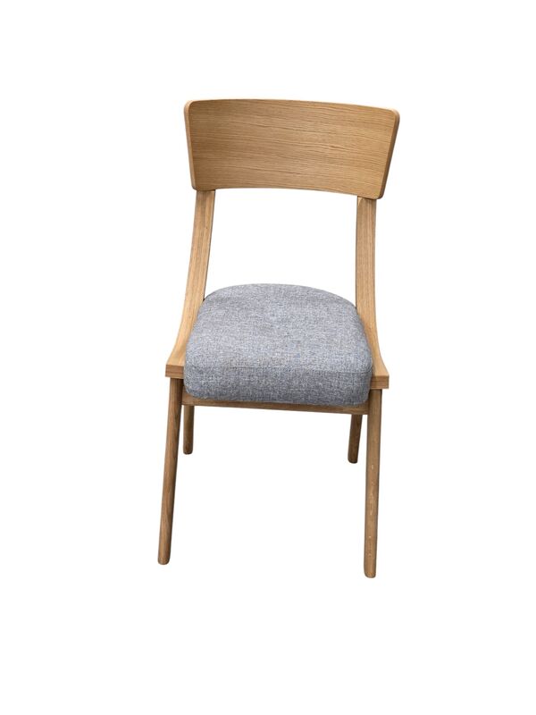 Kuvaus-/tuotekehitysmalli. Ruokapöydän tuoli pehmustetulla istuimella. Runko massiivitammia.