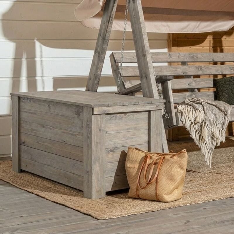 Saaristo pehmustelaatikko tuo säilytystilaa pihaan ja suojaa pehmusteet säältä. Tilava, kotimaisesta männystä valmistettu laatikko toimii myös kätevänä laskutasona.