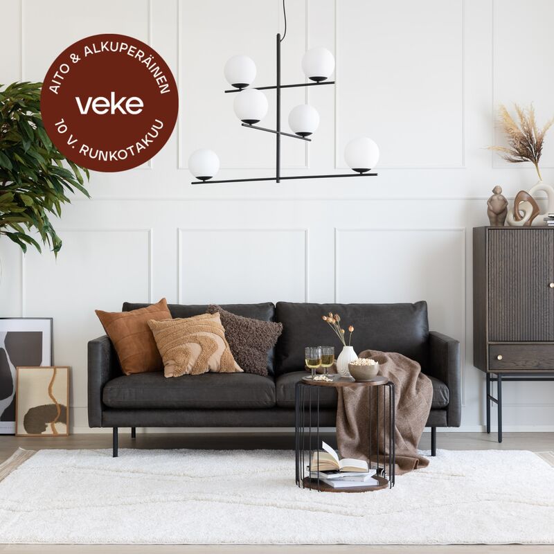 Linjakas ja upean ulkonäön omaava aito ja alkuperäinen Scandic Copenhagen 3-istuttava sohva on siro, joten se sopii pienempiinkin tiloihin. Laadukas sohva sopii hyvin myös lemmikki ja lapsiperheisiin. Sohvan runko on valmistettu kestävästä puusta ja vanerista, mikä takaa pitkän käyttöiän - runkotakuu on 10 vuotta. Sirot mustat metallijalat ja kapeat käsinojat tekevät sohvan ilmeestä kevyen ja ilmavan. Jos kaipaat vaihtelua, saatavilla on myös erikseen ostettava tammijalkasarja, jolla voit helposti uudistaa sohvan tyyliä.