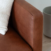 Sohva on verhoiltu kestävällä, aidon nahan tuntoisella bonded-nahalla. Verhoilun väritys ei ole tasainen, vaan siinä on tyylikäs, eläväinen pinta. Mustan nahan tummuusaste vaihtelee luonnonvalon määrän mukaan ja auringonvalossa sävy taittaa hieman ruskeaan.