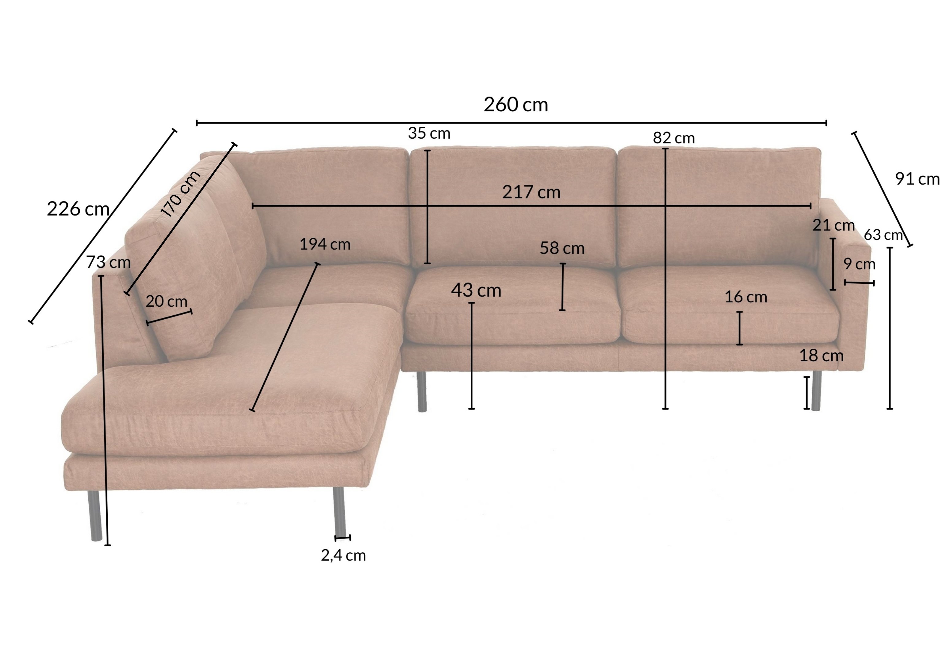 Scandic Copenhagen avokulmasohva vasen roosa Soro 61, mustat jalat