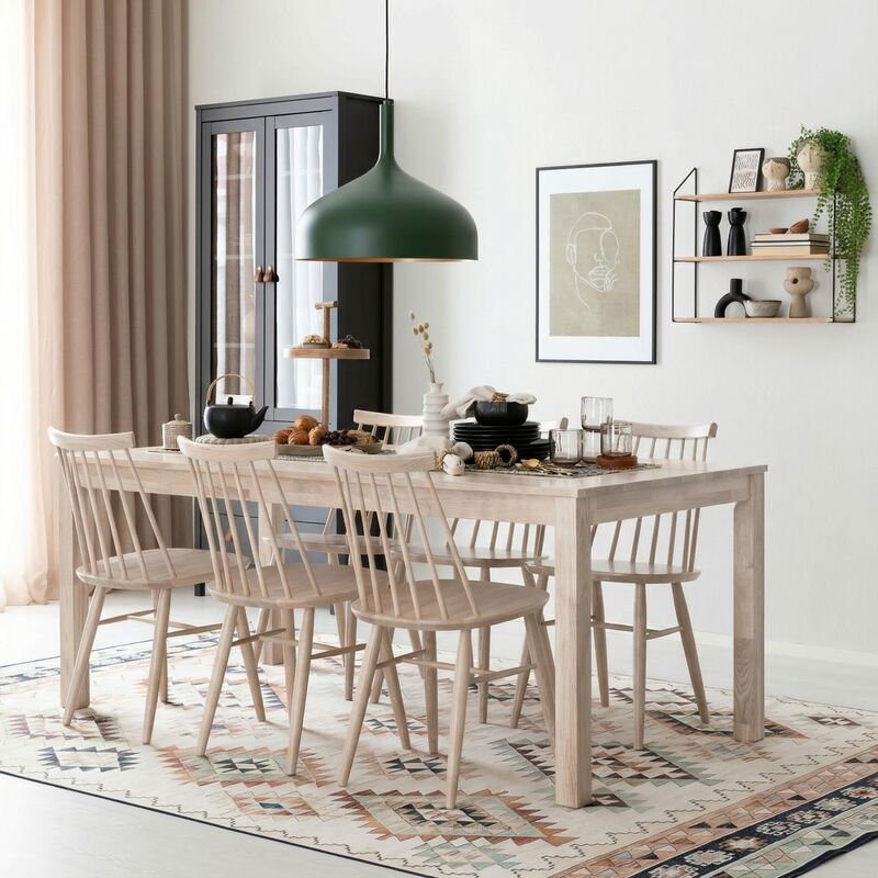 Upea Scandic ruokapöytä 90x180 cm ja 6 tyylikästä Kaarna-tuolia