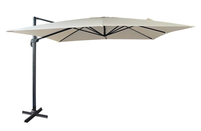 Sivuvarjon runko on valmistettu kestävästä, pulverimaalatusta alumiinista, joka tekee kokonaisuudesta tukevan mutta kevyemmän käsitellä. Varjon kääntyvä mekanismi helpottaa sen suuntaamista auringon mukaan pitkin päivää, jolloin saat varjosta kaiken hyödyn irti.