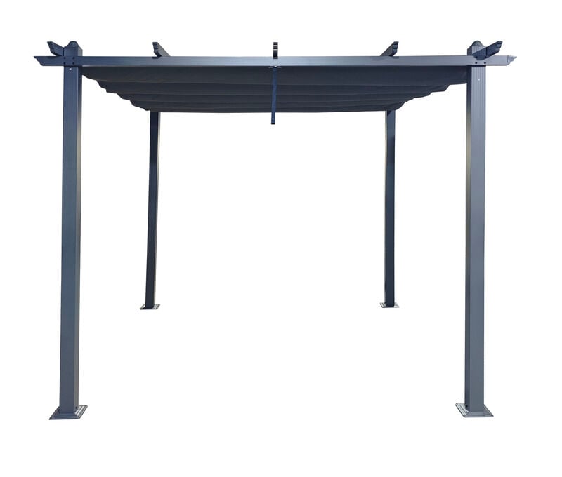 Tyylikäs pergola tuo pihaan tai terassille suojaa ja viihtyisyyttä. Kestävä jauhemaalattu teräsrunko ja säädettävä kangaskatos tekevät siitä käytännöllisen valinnan kesän oleskeluun.