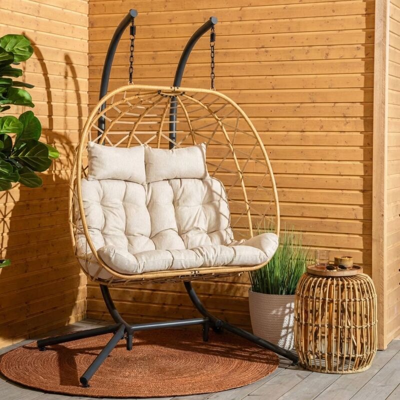 Skara riippukeinu tuo rentoa tunnelmaa pihaasi. Tukeva metallijalusta ja säänkestävä polyrottinkikori sopivat terassille, parvekkeelle tai puutarhaan. Pehmeät, UV-suojatut pehmusteet tekevät istumisesta mukavaa.