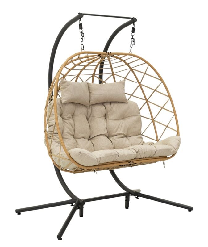 Skara riipputuoli 2-istuttava telineellä luonnonväri