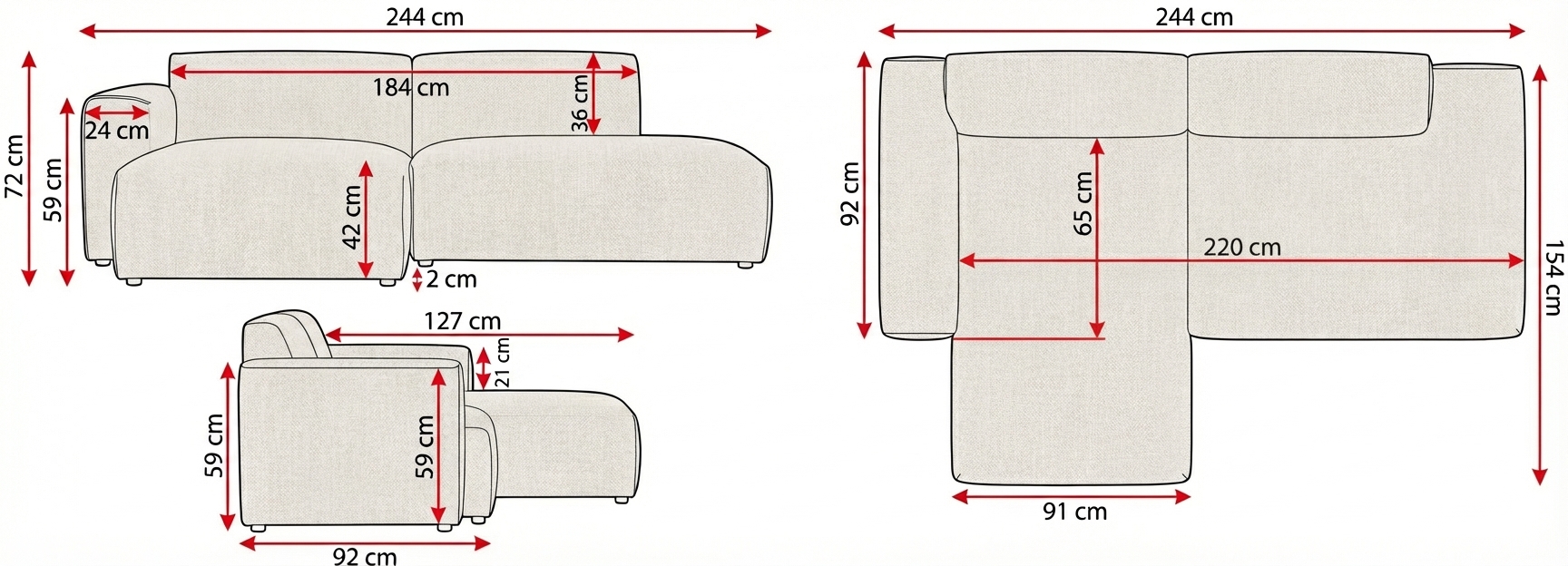 Syli Divaanisohva avopäädyllä, oikea beige Brego 34