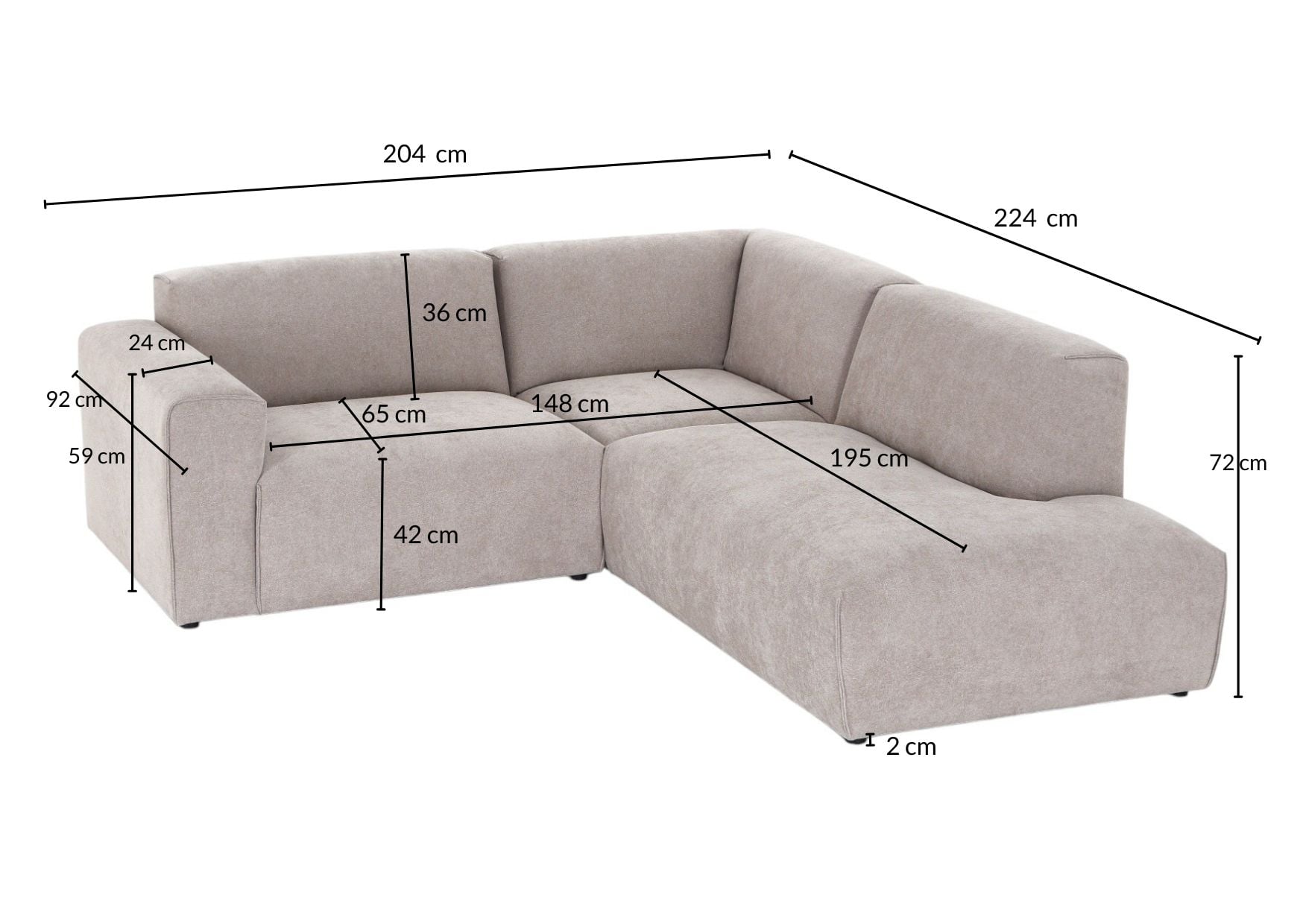 Syli Mini avokulmasohva, oikea beige Brego 34