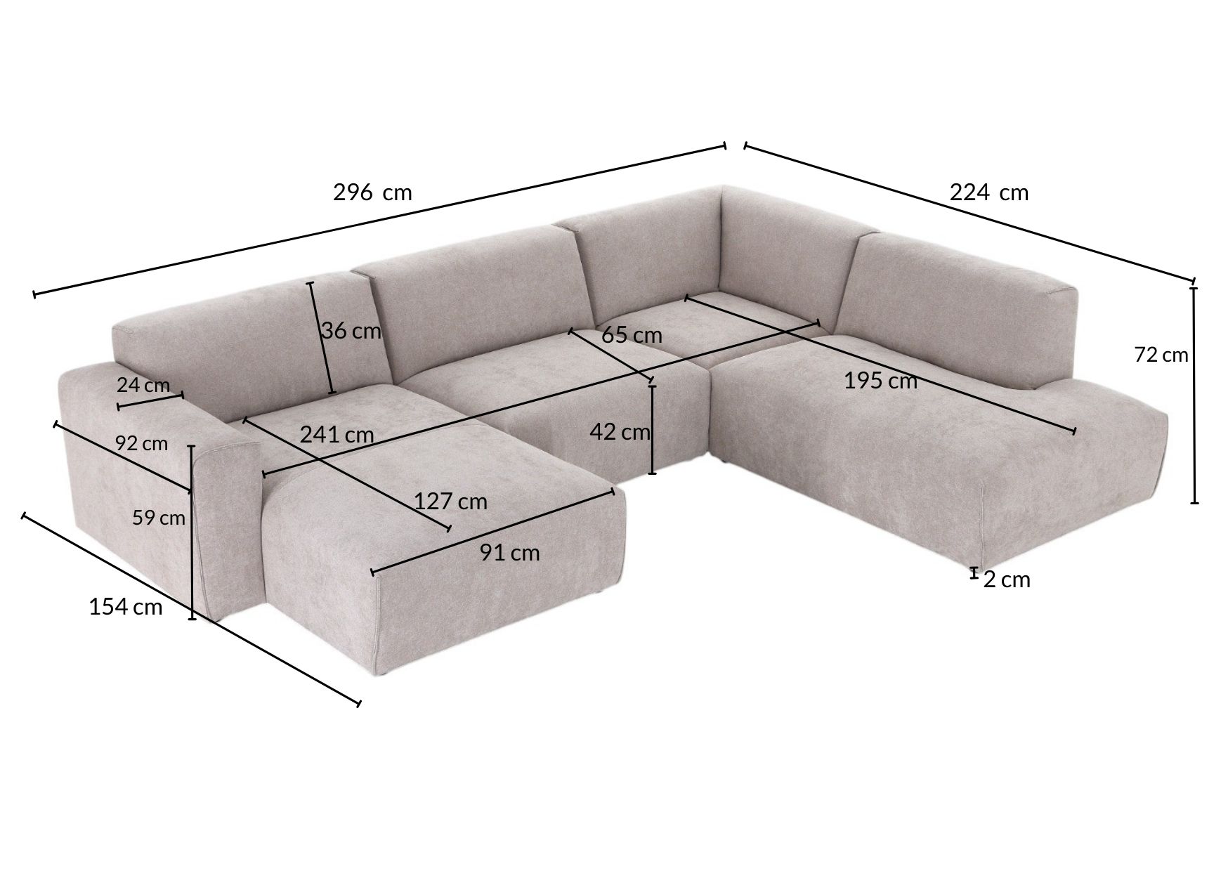 Syli U -kulmasohva, oikea beige Brego 34