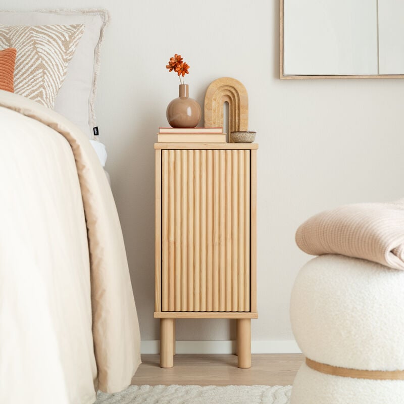 Taika yöpöydän näkyvät osat kuten kannet, sivut ja ovet valmistetaan täysin oksattomasta männystä. Linjakas ja ajaton design sopii monenlaisiin sisustustyyleihin ja luo kotiisi rauhallisen tunnelman. Käytännöllinen ovi avautuu kevyesti ponnahdussaranoilla ja sen takaa löytyy mukavasti säilytystilaa.