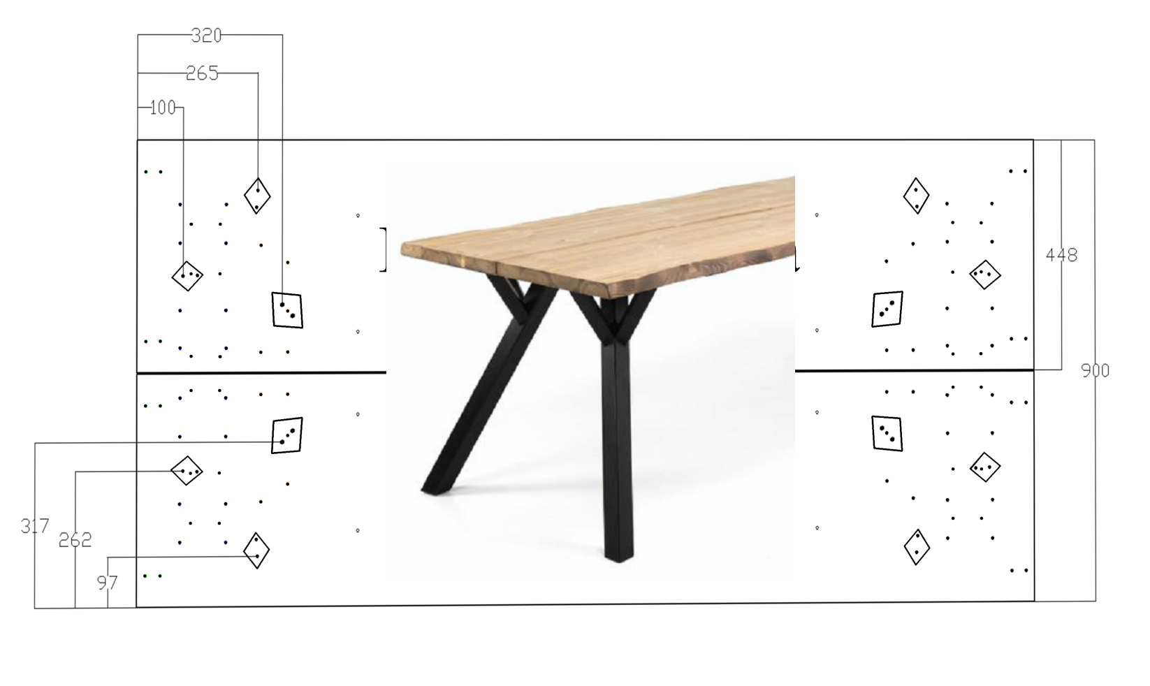 Kannessa on hieman harjattu pinta, joka korostaa tammen luonnollisia ominaisuuksia tuoden esiin kauniisti puun pintarakennetta. Oksat kuuluvat luonnollisena osana masiivipuuhun. Niissä voi olla kapeita halkeamia, jotka voivat olla paikattuja. Pinta ei ole täysin tasainen, vaan tammi on pintarakenteeltaan hieman rouheaa, jonka tuntee kädellä sivellessä pöydän pintaa. Rouheudesta johtuen lakkapinnassa voi olla pieniä kiiltoaste-eroja. Pöytä on pintakäsitelty kolmeen kertaan lakkaamalla vesiohenteisella sisäkäyttöön tarkoitetulla mattalakalla. Lakkaus ei vaadi säännöllistä huoltokäsittelyä öljytyn pinnan tavoin. Pöydässä on kauniit puujalat, joista puunväriset ovat tammea ja värilliset mäntyä. Männystä valmistetut jalat on käsitelty petsilakalla.